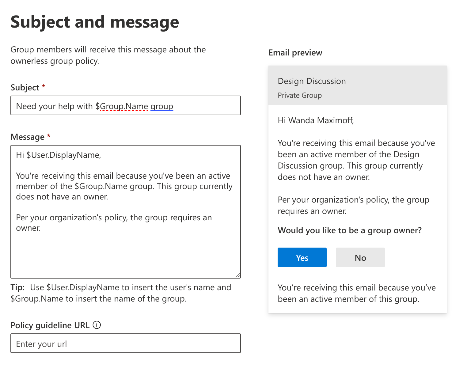 - Enabling No Owner Policy: Look for an option that triggers a notification for group members to volunteer for ownership when the current owner leaves. Enable this setting.