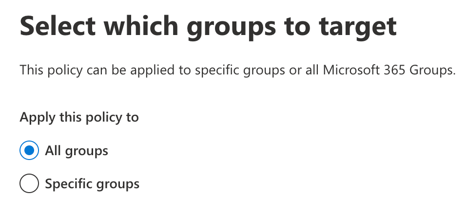 Select which groups to target: Choose which groups to target with this policy. You can select all groups or specific groups.