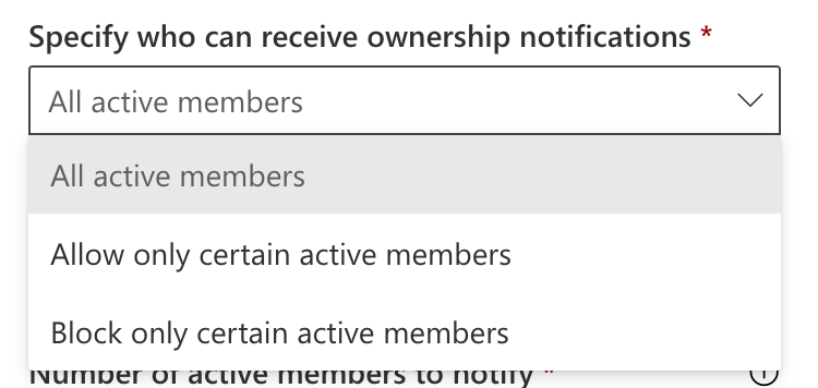 Specify who can receive ownership notifications: Choose whether all members or only selected members can receive notifications.