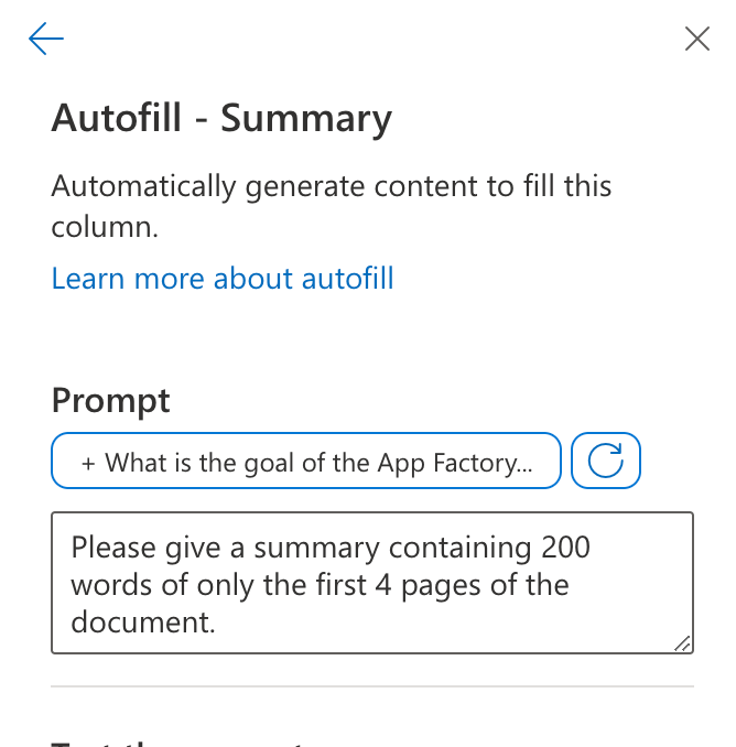 Configure the Autofill Settings: Once you’ve added the column, go to the column settings and click the Autofill link. This is where you’ll define your prompt - the question you want the AI to answer about each document.
