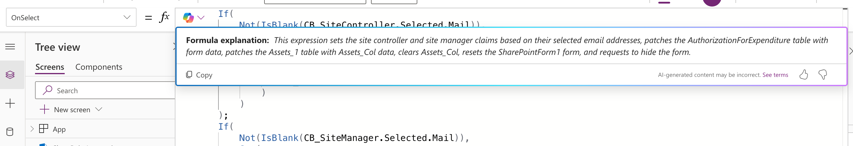 - Have the copilot summarize the purpose and functionality of a flow or app