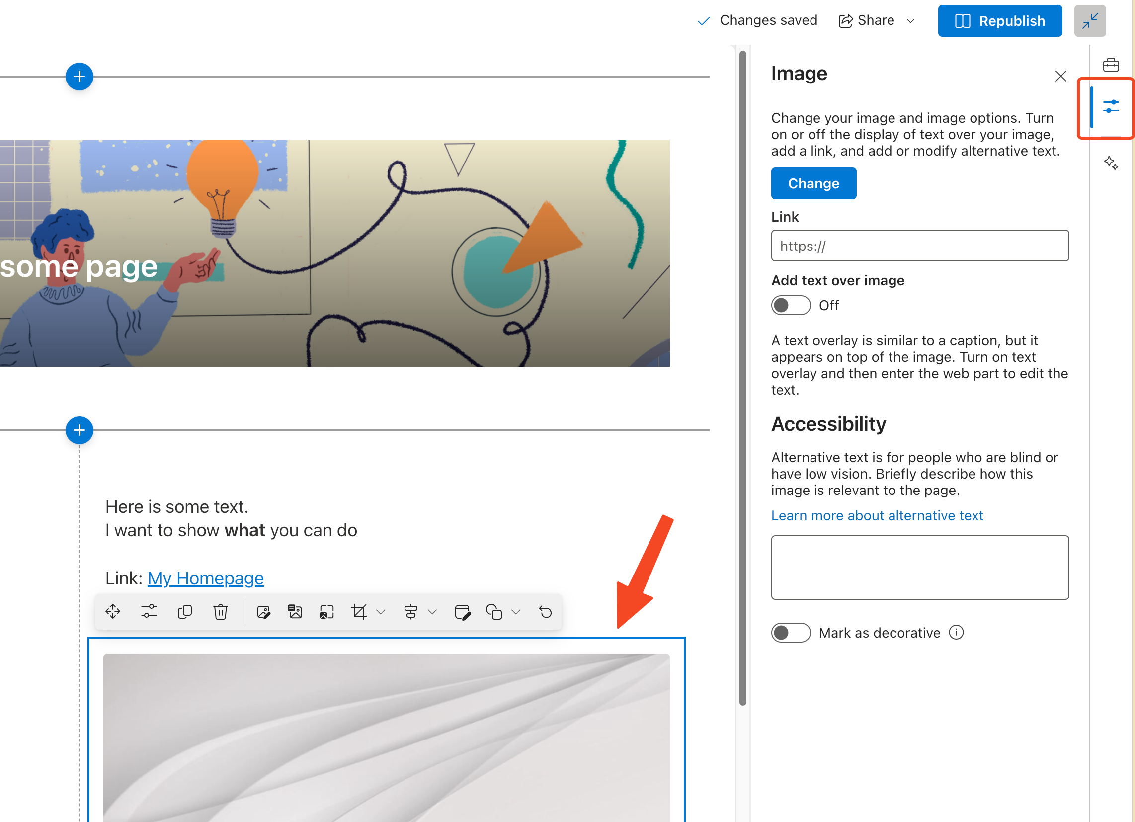 The Content Pane is a new hub for all your page authoring needs, conveniently located on the right-hand side of your screen when you enter edit mode. It consists of three main sections: the Toolbox, Properties, and Design Ideas. This pane is designed to provide quick access to various tools and settings, making your page creation process more efficient and intuitive.