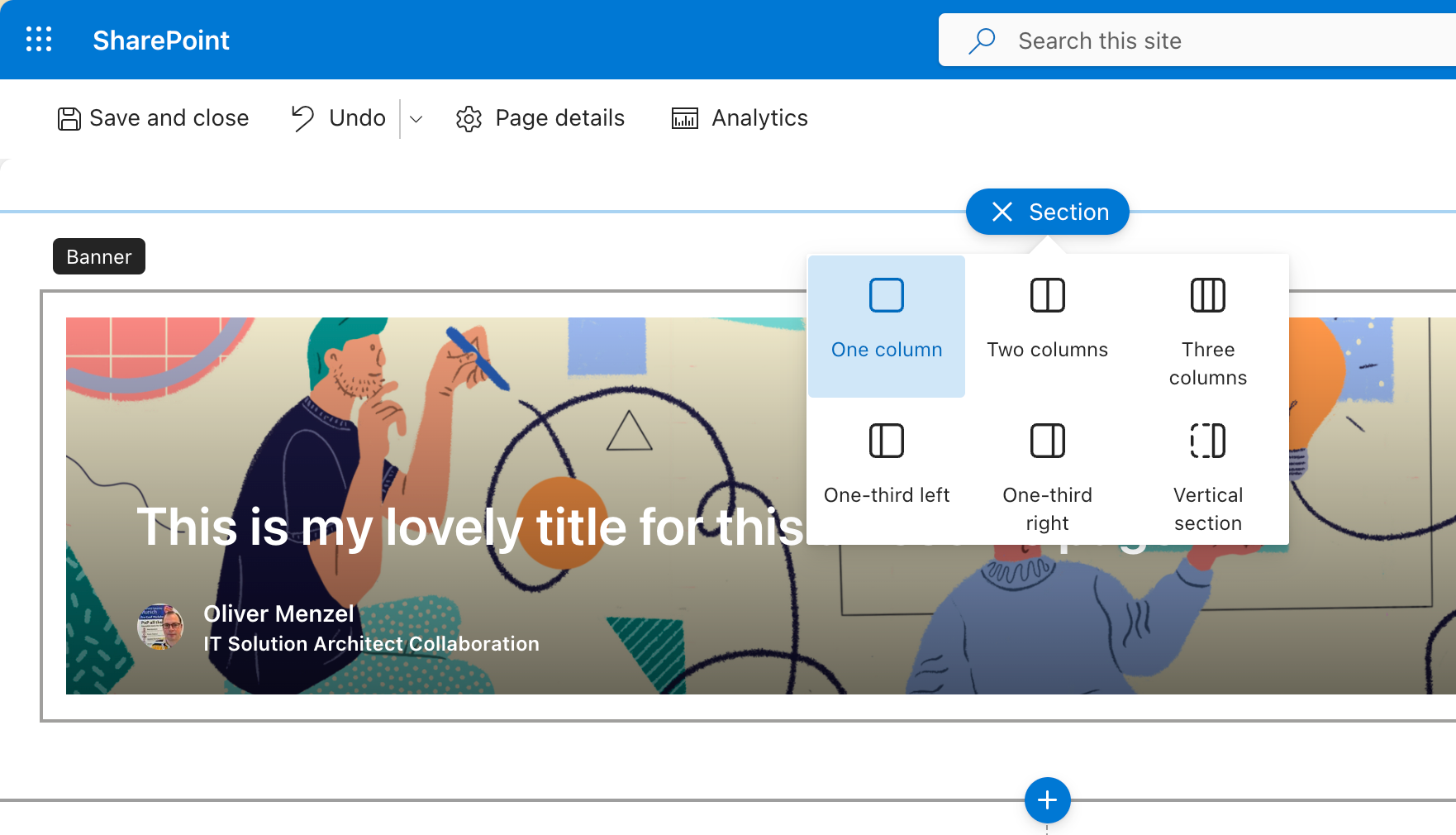 In addition to the Content Pane, Microsoft has also redesigned the section editing experience in SharePoint pages. The section tools, previously located on the left-hand side of the screen, have now been integrated into the page canvas itself. To add a new section, simply click the “+” button between existing sections. The section toolbar, located in the upper-left corner of each section, provides quick access to options like moving, editing, duplicating, and deleting sections.